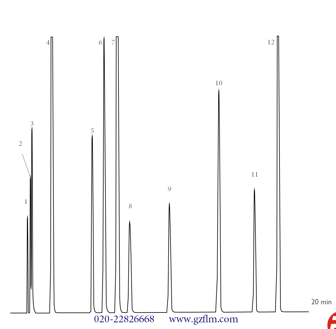 消費(fèi)者在購買食品時(shí)也應(yīng)注意查看食品配料表和營養(yǎng)成分表等信息,了解食品中是否添加了二氧化硫或其鹽類作為食品添加劑,并合理控制攝入量。同時(shí),對于顏色過白、過于鮮亮或有刺激性氣味的食品應(yīng)保持警惕,避免購買和食用可能過量添加二氧化硫的食品。 Sulfur compounds Column: FBX-VOC 2 - 0.53mm, 5.00μm, 30m Conditions: Oven Program: 30°C, 5°C/min, 130°C Carrier Gas: Hydrogen, 3.8mL/min Injector: 200°C Detector: FPD, 200°C Peak identification 1.Hydrogen sulfide 2.Carbonyl sulfide 3.Sulfur dioxide 4.Methanethiol 5.Methyl sulfide 6.Ethanethiol 7.Carbon disulfide 8.2-propanethiol 9.1-propanethiol 10.Thiophene 11.1-butanethiol 12.Methyl disulfide ![]() |